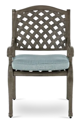 With traditional style and timeless design, the Macan Collection is a welcome addition to any outdoor living space. The gray metal and stylish blue cushion will look good for seasons to come! Gather together this summer and dine al fresco! With durable construction and a seat cushion that is both comfortable and stylish, this outdoor dining chair is a great addition to your backyard.