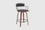 The Priscilla 25.5" Swivel Walnut Wood Counter Height Stool in black faux leather with golden bronze metal is a stylish addition to any dining room or kitchen. Its modern design features a comfortable swivel seat and supportive arms, making it perfect for counter height seating. The combination of black faux leather and walnut wood creates a sophisticated look that complements a variety of decor styles.