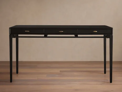 A modern classic, our Brock Writing Desk’s understated aesthetic features sleek lines and a deep, hand-stained finish. Brock’s leather writing surface and subtle, burnished brass hardware elevates the midcentury style by complementing natural ash wood with sophisticated detailing.