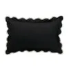 Mix in some neutral pillows with a flair to liven up your outdoor seating. This lumbar pillow features great comfort, and thickness. The black pillow features a scalloped flange with a natural trim. This engineered performance fabric maintains its rich color and unwavering strength through normal wear, exposure to natural light, the elements, and cleaning. In addition, a wear and abrasion test is performed to determine its durability, ensuring the highest quality fabric is used. The interior filling consists of 15 denier hollow silk polyester with 100% solution-dyed acrylic fabric.