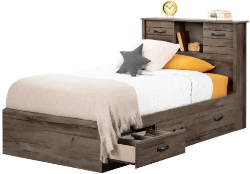 When it comes to furnishing your child's room, a complete traditional-style bed set is a safe bet. Since you don't want to have to change furniture at every stage of your little one's life, opt for a neutral-looking headboard and bed that will evolve as your child grows. The simple, flawless lines and classic handles are sure to stand up to trends, for a permanent stylish look. This all-in-one furnishing solution focuses on increasing the amount of storage space in your child's room. With the help of the 3 drawers on metal slides of the crib and the compartments with sliding panels of the headboard, encourage your darling's independence by teaching them to store their belongings. The drawers are ideal for clothes, while the open spaces in the headboard hold the small items that ensure a good night's sleep: a glass of water, a favorite stuffed animal, a book, and an alarm clock. A grommet hole in the back makes it easy to plug in wires right away. Available for Online Purchase Only. Assembly required. This product ships direct from the manufacturer, so RC Willey Delivery is not available.