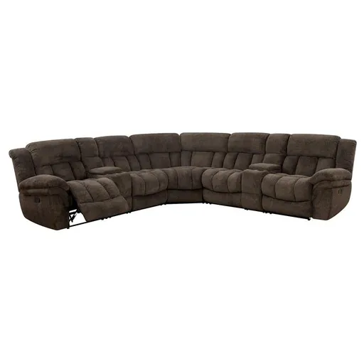 The best way to watch a movie is with a group. And you can host an epic viewing party with this sectional sofa. The spacious seating is draped in a soft chenille fabric. Foam filled cushioning offers up a cushy seat and give superior headrest. Two armrest features built-in cup holders and storage space for snacks and to keep the remote safe from that friend that always wants to turn the movie down. Reclining end seats cap off this impressive seating structure that will make hosting a breeze.