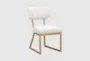 The Ebe Cream Recycled Fabric Dining Chair combines sustainability with style, featuring a remarkably soft fabric made from 150 recycled plastic bottles. Handmade by skilled furniture artisans, this chair boasts a super cleanable upholstery with a PFAS-free liquid repellant coating. Its stylishly angular wooden frame adds a touch of modern elegance to any dining space.