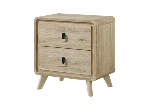 Create a serene and modern retreat with this thoughtfully designed bedroom collection, blending natural textures with contemporary charm. The centerpiece features a slatted headboard and footboard, highlighting a warm, wood-inspired finish that adds a sense of tranquility and organic appeal. The sleek, mid-century-inspired silhouette is carried through to the accompanying storage pieces, which boast clean lines, ample drawer space, and minimalist hardware for a streamlined look. Perfect for those seeking both style and functionality, this collection transforms your bedroom into a cozy, refreshing sanctuary with timeless aesthetic appeal.