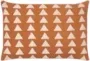 Add a touch of modern flair to your home with the 14x22 Rust Orange + Dusty Pink Fabric Triangle Block Print Lumbar Throw Pillow. This rectangular lumbar pillow features an eye-catching geometric design in clay and rose hues, perfect for any living space. The 100% cotton fabric adds a soft and comfortable feel to your decor.