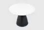 The Monae 47" Round White Marble Top With Black Base Dining Table is a stunning addition to any dining space. Its elegant white sintered stone top offers a sophisticated marble-like appearance, while the modern black metal pedestal base provides sturdy support and a contemporary aesthetic. Constructed with durable materials, this table is designed for years of reliable use.