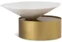 The Dominique Modern White + Gold Metal 30" Abstract Coffee Table is a stunning addition to any living room. With its unique abstract design and combination of white and gold finishes, this table brings a touch of modern sophistication to your space. The round shape and sleek metal construction make it a perfect centerpiece for gatherings and conversations.