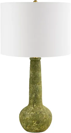 Bring effortless character to any room with this charming table lamp. The textured green base has a handcrafted, naturally weathered look that adds warmth and organic style to your space. Topped with a clean white drum shade, it delivers soft, inviting light that’s perfect for a cozy living room, bedside table, or home office. Simple, stylish, and full of personality, this lamp is an easy way to elevate your décor.