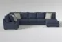 Kamlyn Foam Blue 3 Piece 157" Sectional With Right Arm Facing Chaise | Fabric | Reversible | Loose Reversible Back