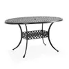The Tivoli Collection pairs Artisan craftsmanship with a heavyweight sand and cast aluminum frame, designed to be one of our sturdiest sets. This 66 x 44 in. oval gathering height table features a sleek matte black finish, enhanced with weather-resistant properties such as a UV-resistant and electrostatically applied powder-coat. It features a basketweave tabletop design with a decorative trim that surrounding the legs. Designed to seat 6 comfortably, complete your table with swivel gathering height chairs, sold separately, for a comfortable seating experience as you dine in style with your new patio dining furniture.