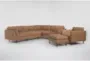 The Ewan Caramel Brown Leather 2 Piece 114" Sectional with Left Arm Facing Sofa Chair & Cocktail Ottoman is a perfect addition to your living room. With its modern design and luxurious Maestro Caramel leather, this sectional offers both comfort and style. The set includes a left arm facing sofa chair and a versatile cocktail ottoman, making it ideal for relaxation and entertaining.