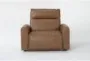 Experience exceptional comfort and style with the Trenton Saddle Brown Leather Power Oversized Recliner with Power Headrest. Its modern design and luxurious leather material make it a perfect addition to any living room. The adjustable headrest and oversized dimensions offer unparalleled relaxation and support.