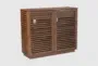 Introducing the Walnut Wood Shutter Door Bar Cabinet, the perfect addition to your dining room or kitchen. This modern bar cabinet features a sleek walnut finish and a sturdy square shape, making it both stylish and functional. The shutter doors provide easy access to your beverages and barware, while the touch functionality and cord management system ensure a seamless experience.