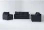 Transform your living room with the Aramis Midnight Blue Navy Fabric 3 Piece Sofa Loveseat & Arm Chair Set. This modern set includes a sofa, loveseat, and arm chair, all featuring comfortable track arms and a stylish midnight blue fabric. The set is perfect for creating a cohesive and inviting space for your family and guests.