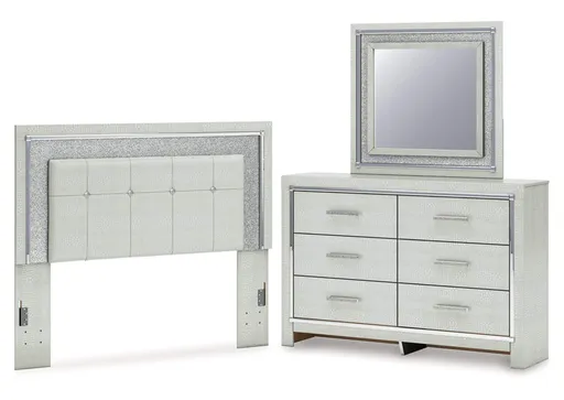 Bright, bold luxury. The Zyniden bedroom package dazzles with its attention to detail. Your love of glamorous style is reflected in its all-over faux gator in a metallic finish, exquisitely paired with faceted chrome-tone details. With its opulent approach to bedroom style, this set inspires you to live luxuriously every day.