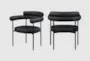 Enhance your dining experience with the Laki Black Vegan Leather Fabric Upholstered Dining Arm Chair. This modern set of 2 dining chairs features a sleek black color that adds a sophisticated touch to any dining room or kitchen. The curved design and armrests provide comfort and support, making these chairs perfect for long meals and gatherings.