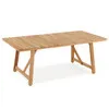Constructed using a reclaimed teak frame with a fine, sanded finish, this natural-based stain Mandalay dining table adds a rustic charm to your patio. The classic style and sturdy construction of this table is designed to seat 6 people comfortably. The trestle base provides extra support. The teak is exclusively grown in Indonesia and made from recycled teak wood components, gathered from FSC®-certified plantations. Making it one of the most durable materials we carry, teak is the only material with a natural resistance to water, insects, mold and mildew. It is a combination of machine-made for precision and handmade with traditional Mortise and Tenon construction for smooth and tight joinery. This versatile table allows you to pair various chair materials around to complete a look that is unique to you.
