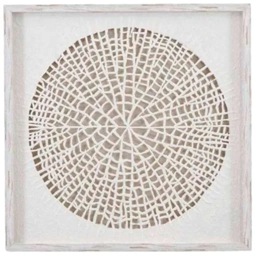 Webb Wall Art is a shadow box accentuated with a light tan silk-like matt and a spiral woven design of white rice paper with a white washed molding. This piece of art is hand-painted by a skilled artist lending itself to a unique technique and will vary slightly.