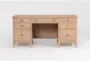 Part of a modular office collection that will work as hard as you do, our Wright executive desk offers everything you need to succeed. Solid poplar and elm cathedral veneer in a dark natural finish bring beauty and durability, while subtle craftsman details lend character and charm. With English dovetail joinery and full-extension ball-bearing glides, high-quality drawer construction ensures smooth operation. In addition to a drop-down keyboard tray that can also be used for storage, you'll find locking file drawers and removable drawer dividers for easy organization. AC outlets and wire management keep everything under control.