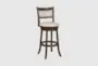 The 44" Hana White Swivel Bar Stool combines modern style with casual comfort, making it a perfect addition to any home bar or kitchen. The stool features a cream seat and backrest with a dark walnut finish, providing a sophisticated look. Made from high-quality materials including rubberwood, bent plywood, PU foam, metal, and faux leather, this stool is both durable and stylish.