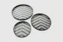 This exquisite set of sea shell trays are great decorative trays for shelves, coffee tables, dining tables, drawers, cabinets, and the bedroom. Designed with felt or rubber stoppers at the base that prevent scratching furniture and table tops, as well as sliding around. This item ships in 1 carton. Please note that this item is for decorative purposes only and is not food safe. Nesting trays for compact storage. Mother of pearl tray makes a great gift for any occasion. Due to the handmade nature of this item, no two will be alike, there will be slight differences in shape, size, and color. Suitable for indoor use only. This item ships fully assembled in one piece. Made in Vietnam. This black colored ottoman tray comes as a set of 3. Coastal style.