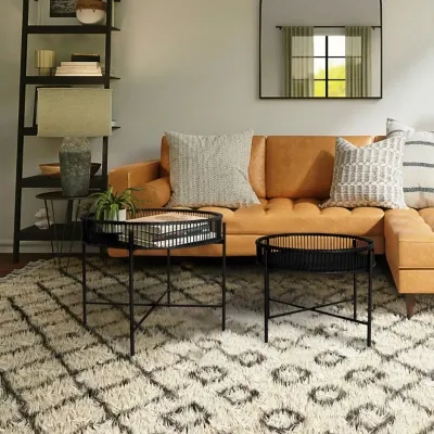 This bamboo and metal table set is a stylish and convenient addition to the home. The set features 2 round removable bamboo trays on X-frame metal stands, creating stylish and portable tables for any space. Made of handwoven bamboo and with a sleek black finish, these tables complement modern farmhouse, Scandinavian and Japandi design styles. It's ready to use in 5 minutes with a simple and easy assembly process. This table set is both a versatile and stylishly minimal product that can be used as coffee tables, side tables, plant stands or accent pieces. It is ideal for adding natural and modern flair to the living room, bedroom or patio.