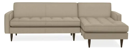 A small-scale sectional with sophisticated style, Reese adds refinement with details like button tufting, precise welting and tall, tapered legs. The shallow seat features structured cushions for supportive, upright sitting for people of all sizes.