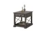 Enhance your living room with the Merlin Grey Wood End Table. This traditional piece features a smokey grey finish that highlights its timeless appeal. Crafted from poplar solids and birch veneers, it provides both style and functionality with its convenient storage drawers and built-in AC outlets.