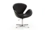 The Raspberry Black Adjustable Swivel Accent Chair is a stylish addition to any modern living room. Its black and polished chrome color scheme gives it a sleek and contemporary look. The chair is designed with a comfortable faux leather upholstery and features a curved shape for added comfort.