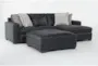 The Big Sur Blue Leather 108" 2 Piece Modular Sectional with Right Arm Facing Chaise & Cocktail Ottoman brings casual style and comfort to your living room. Upholstered in volcano blue leather, this sectional offers a timeless look with a durable finish. The modular design allows for versatility in arranging the pieces to fit your space perfectly.