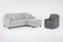 stark light grey fabric sofa with reversible chaise & light grey fabric swivel armchair