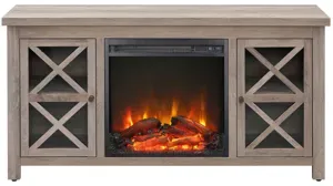 Functionality and on-trend design combine in this sturdy Eve TV stand with log fireplace insert. Its rich wood tone creates a warm neutral palette that will blend seamlessly into any color scheme, while its crisscross-accented cabinet doors add a touch of modern farmhouse whimsy. Stay warm and cozy while you take in the big game, a movie marathon, or that season finale everyone's been talking about.