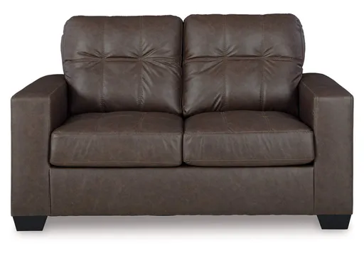 Everyday comfort meets versatile style in the Barlin Mills loveseat. The handsome hue of the goes-with-anything faux leather takes away the stress of styling, expertly pairing with your existing aesthetic. From kicking back on the weekends to relaxing post-work, living room lounging has never been so chic.