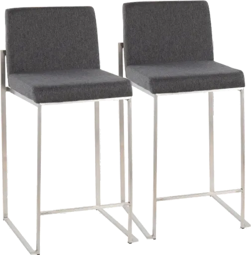 Fuji High Back Stainless Charcoal Counter Stools, Set of 2