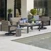 $7,799.90Chair Kingchelsea textured black aluminum and weathered teak outdoor wicker concealed cushions 4 piece swivel sofa group 52 x 32 in fire pit tableSaveAdd to List