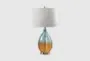 Brighten up your space with the 27" Cortina Blue Glass Ombre Table Lamp. This beautiful lamp features a captivating ombre effect that transitions from a vibrant blue to a warm amber, adding a touch of color and interest to any room. The blend of materials ensures both durability and a stylish look that complements various decor styles.
