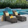 The Tribeca Collection contains concealed cushions seating composed of browns and greys for a versatile look that blends with every style. Each chaise in this 2 piece chaise lounge set is handwoven with synthetic strands of resin wicker, treated with UV inhibitors, over a powder-coated aluminum frame. Sink into the triple-layer construction and quick-drying, reticulated foam cushions of the chaise lounges and relax in comfort. With cushions built-in, you don't have to worry about securing cushions or having to readjust them.