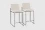 Enhance your kitchen or dining area with the Ian Beige Contract Grade Upholstered Counter Height Stool Set Of 2. These stylish stools feature a fixed counter height and are upholstered in a soft beige fabric, providing both comfort and elegance. The padded seat and backrest ensure a cozy seating experience, making them perfect for any contemporary or minimalist space.