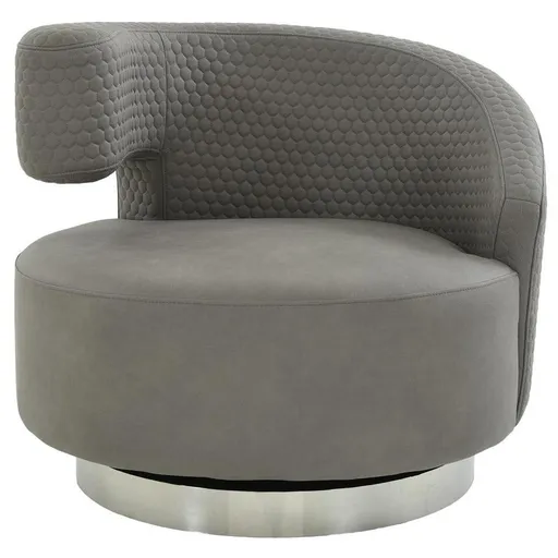 Add comfort and style to your living room with the Okru Light Gray Accent Chair. The chair's soft ash gray polyester fabric is comfortable for you to sit down on, and it's enhanced with a beautiful honeycomb stitching. The brushed metal base gives you stability when you start to swivel.