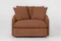 The Lula Orange Rust Fabric Swivel Cuddler is the perfect addition to your living room for cozy cloud-like comfort. With its curved shape and soft polyester upholstery, this cuddler offers both style and relaxation. Ideal for casual living spaces, it features a swivel design that allows you to turn effortlessly.