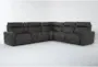 Trenton Graphite Leather 6 Piece Power Reclining L-Shaped Modular Sectional with Console Power Headrest Wirless Charging Storage Pop Out Cupholders & USB
