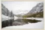 Bring the serene beauty of a snow-covered lake into your home with this stunning framed canvas art. The landscape orientation and rustic style make it a perfect addition to any room. The soft colors of white, grey, and green create a calming and natural atmosphere.
