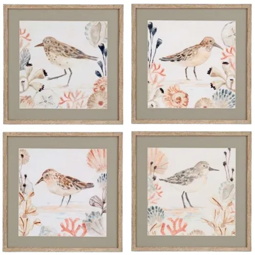 Shell Pipers is a four piece set that features fine art cotton rag paper and a 1" whitewash molding and tan matting. Update your home in a stylish manner with this beautiful wall art. Perfect style for your living room or home office.