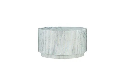 The Leila Multicolor Blue Drum Round Coffee Table is a stunning addition to any modern living space. Its unique geometric design and soft ivory blue color blend seamlessly with various decor styles, including coastal and contemporary. Crafted from MDF and natural mother of pearl shells, this table offers both beauty and functionality.