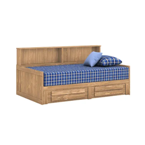 The B-Two collection offers rustic-inspired styling that is solidly built, handsomely designed, and thoughtfully equipped with smart storage solutions for everyday living. The versatile Jr. Roomsaver twin-size storage bed exemplifies the collection’s charm with its sturdy frame finished in a natural buckskin tone, bringing warmth and character to any room. Designed with both form and function in mind, it includes two spacious drawers beneath the bed—ideal for storing linens, blankets, or seasonal items—while the integrated headboard shelving offers a convenient spot for books, decor, or bedside essentials. Includes headboard, bed frame, bed ends, 2 under-bed storage drawers, and slat roll.