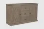 The Barlo Farmhouse Natural Wood 2 Door 3 Drawer 60" Sideboard Buffet is a perfect blend of farmhouse charm and traditional elegance. Crafted from solid pine, this sideboard features a natural wood finish that adds a touch of rustic chic to any room. With two cabinets and three drawers, it offers ample storage space while maintaining a timeless, classic look.
