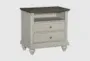 The Brookside 2-Drawer Nightstand combines modern design with a touch of farmhouse charm. Featuring a stylish 2-tone finish in dark brown and light gray, this nightstand is crafted from high-quality wood, ensuring durability and elegance. With two dovetail drawers equipped with ball bearing glides and a convenient storage cubby, it offers ample space for your bedside essentials.