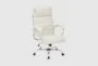 The Terwilliger Cream Executive Office Chair features a modern design with a plywood construction and a thick padded faux leather seat and back, built-in lumbar support, and adjustable height and tilt controls for maximum comfort. Assembly is required and the chair comes in a white color with cream polyurethane accents.