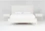 Transform your bedroom into a serene retreat with the Austen White Queen Footboard Storage Wood & Upholstered Platform 3 Piece Bedroom Set. This traditional set includes a queen-sized bed with a panel design and two 1-drawer nightstands, all in a soft white finish. The combination of oak veneer, solid rubberwood, and fabric ensures durability and comfort.