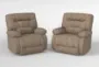 Experience ultimate relaxation with the Decker III Fabric Power Rocker Recliner Set of 2. These recliners, in a warm chestnut color, are perfect for any living room. Designed with comfort in mind, they feature foam cushions and a tight back for enduring support.